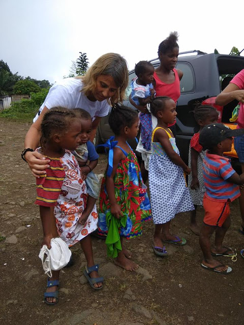 Na segunda metade do terceiro dia em São Tomé fizemos uma entrega na localidade de Margão. Ao fim do dia, as nossas voluntárias já se sentiam cansadas fisicamente mas motivadas a continuar neste projecto que faz a diferença na vida de tantas pessoas!