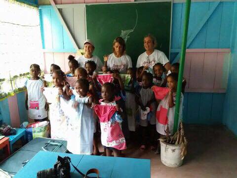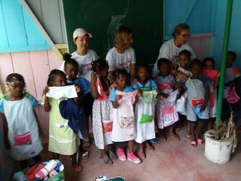 As nossas colegas, voluntárias e amigas Vanessa Campos, Alexandra Egreja e Ana Bragança estão neste momento em São Tomé e Príncipe a distribuir centenas de vestidos e calções.